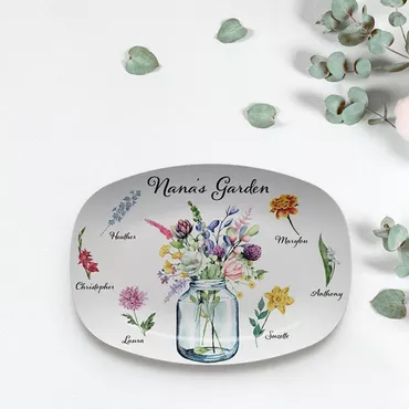 Personalized Name And Birth Chic Flower Plate Beautiful Mother's Day Present