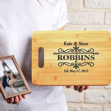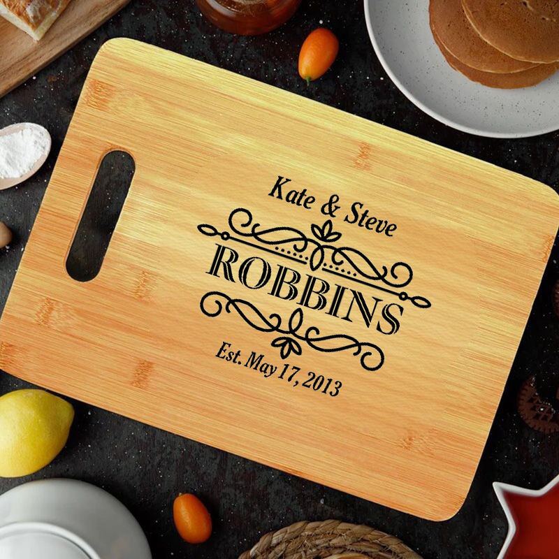 Personalized Name And Date Chic Charcuterie Board With Beautiful Lines Design Best Gift For Wedding