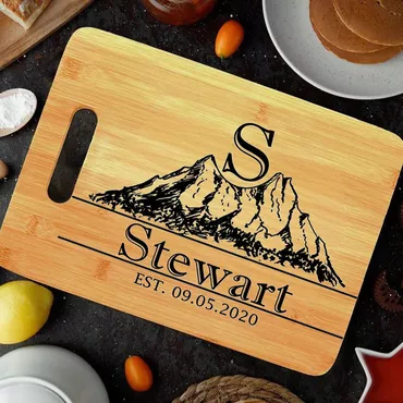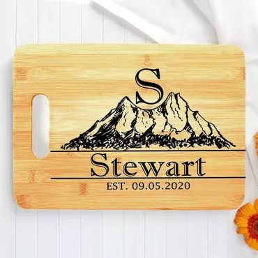 Personalized Name And Date Chic Charcuterie Board With Mountains Pattern Exquisite Gift For Him