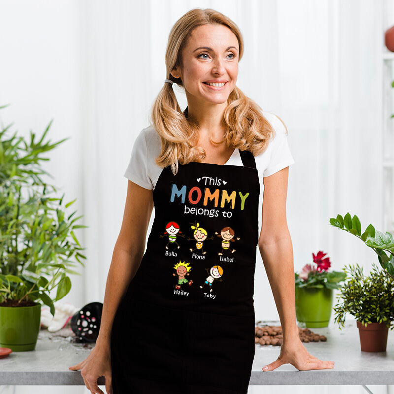 Personalized Name Apron With Chic Cute Figure Pattern Exquisite Gift For Family