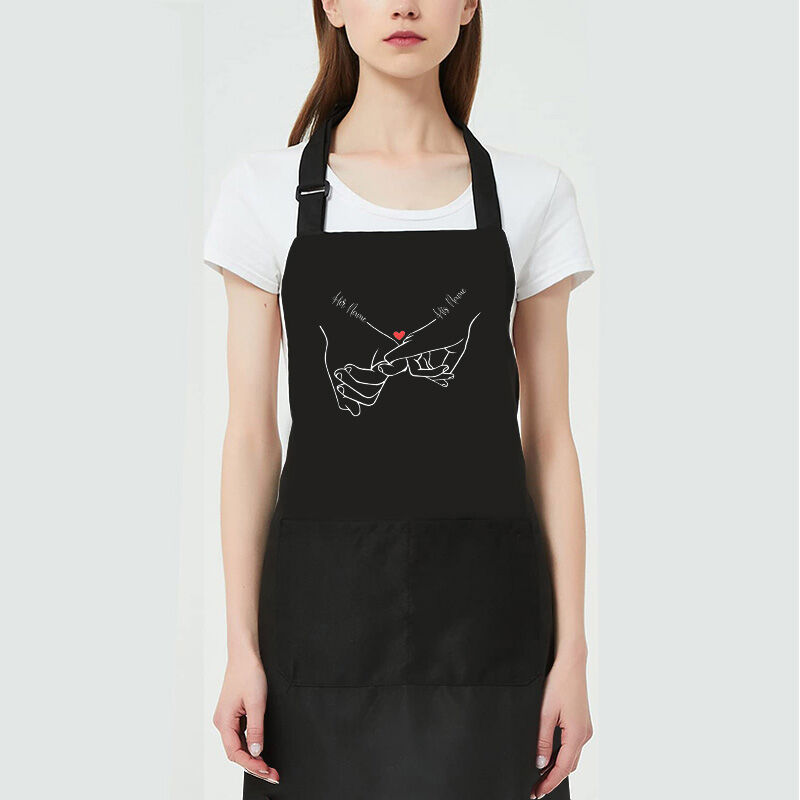 Personalized Name Apron With Chic Hands Pattern Sweet Gift For Couples