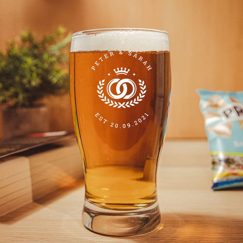 Personalized Name Beer Glass Chic With Ring Pattern Interesting Gift For Couples