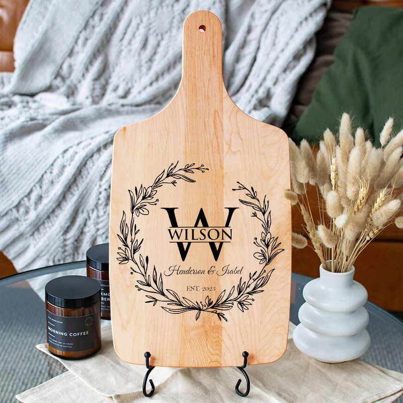Personalized Name Charcuterie Board Chic With Creative Garland Pattern Artistic Wedding Gift
