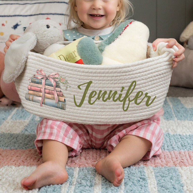 Personalized Name Storage Basket Chic With Book Pattern Wonderful Gift For Children