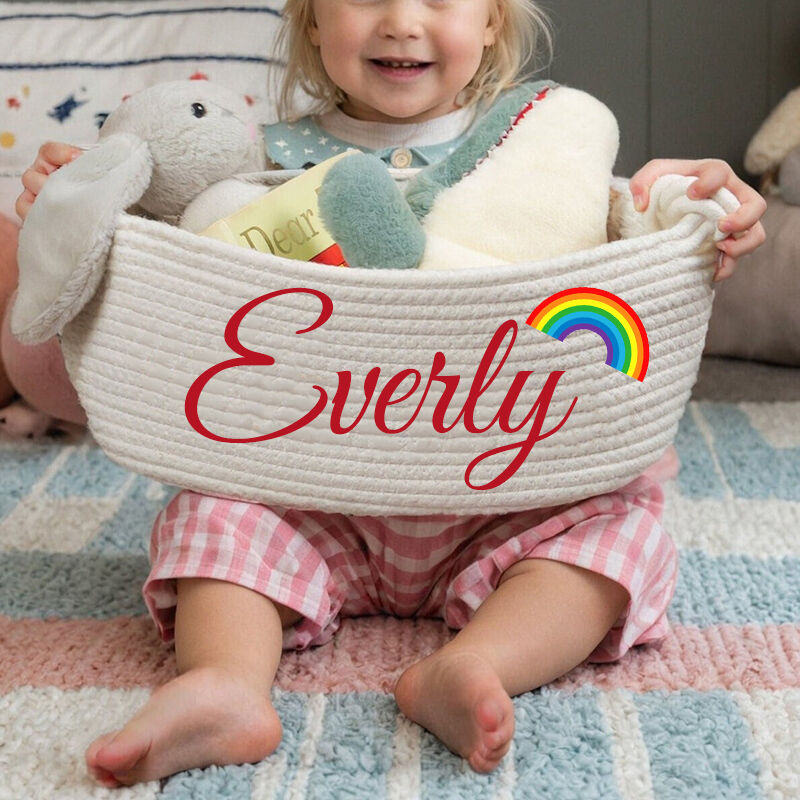 Personalized Name Storage Basket Chic With Rainbow Pattern Beautiful Gift For Kids