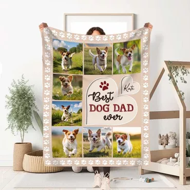 Personalized Picture Blanket With Chic Paw Print Pattern Cute Gift For Pet Lover