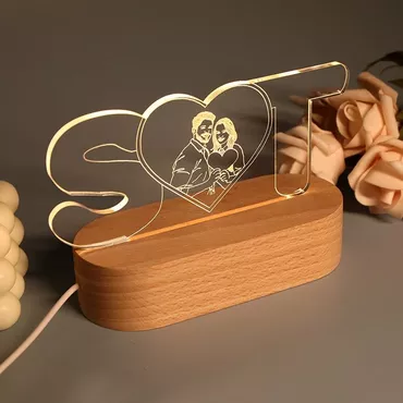 We feature this unique night light. The lamp body is made of acrylic and the base is made of wood. Provides a comfortable lighting effect at night with soft light. The acrylic's transparency and light diffusion effect fill the room with a soft glow, creating a warm, peaceful atmosphere.