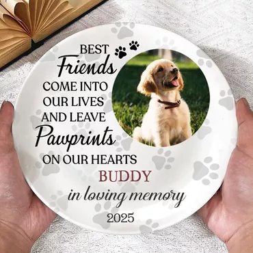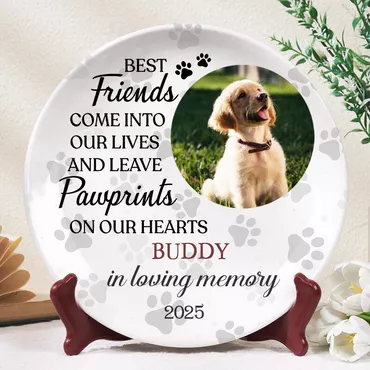 Personalized Picture Plate With Chic Pawprints Pattern Cute Gift For Pet Lover