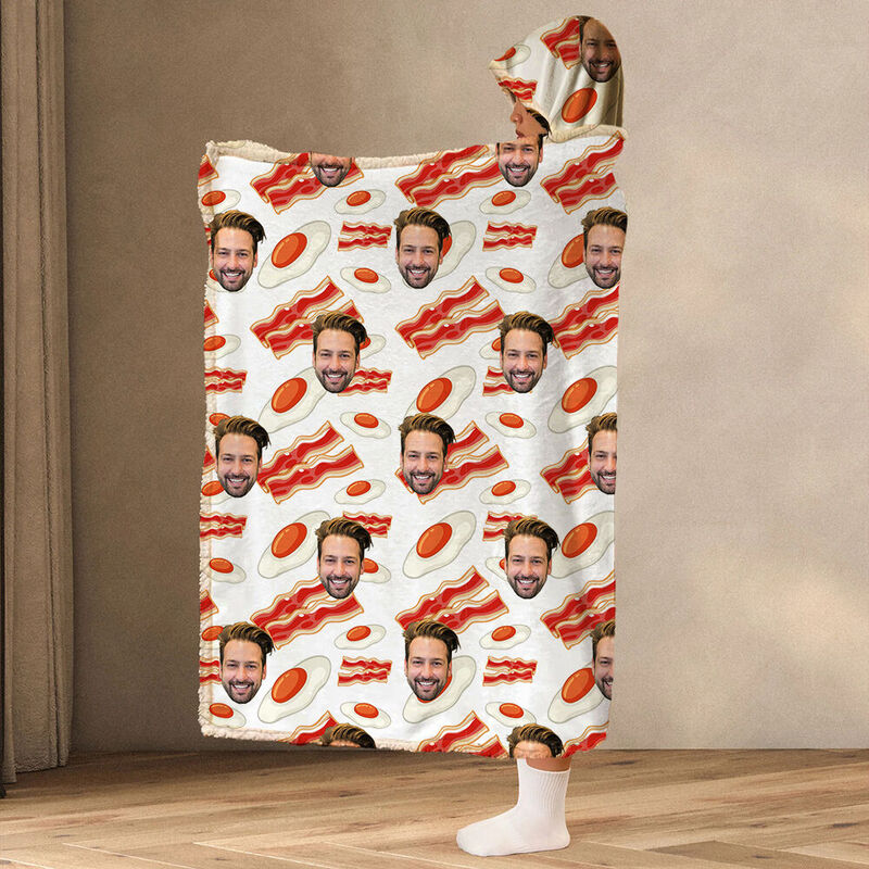 Personalized Picture Wearable Blanket Chic Hoodie With Egg Pattern Perfect Gift For Family