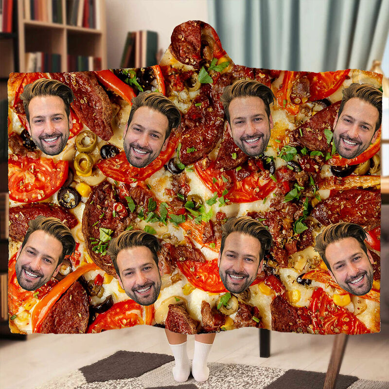 Personalized Picture Wearable Blanket Chic Hoodie With Food Pattern Creative Gift For Family