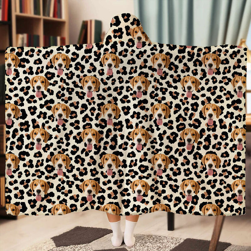 Personalized Picture Wearable Blanket Chic Hoodie With Leopard Pattern Cool Gift For Pet Lover