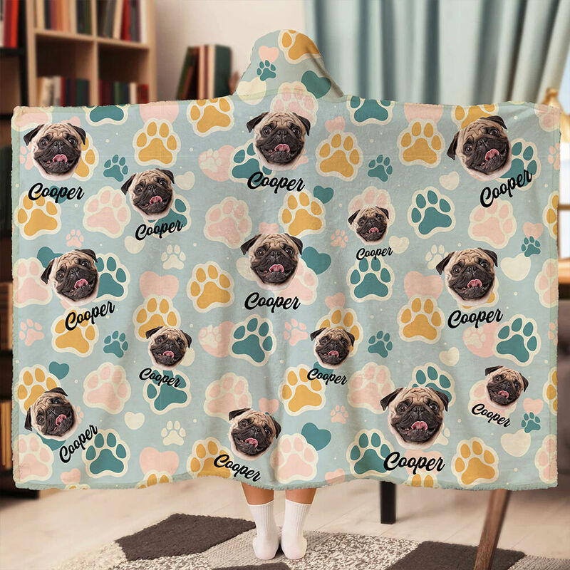 Personalized Picture Wearable Blanket Chic Hoodie With Paw Print Pattern Cute Gift For Pet Lover