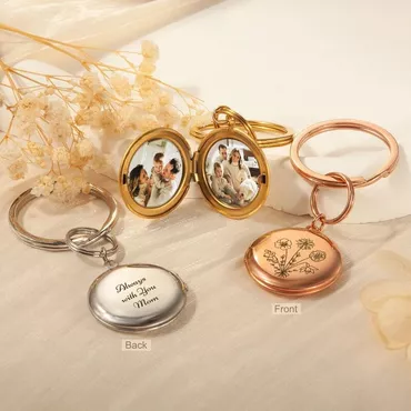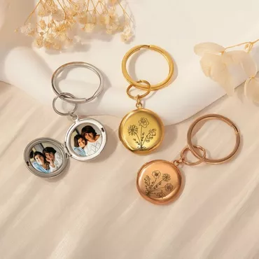 Personalized Round Photo Keychain Chic Customized Birthday Flower Christmas Gift For Mother