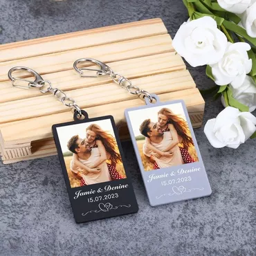 Personalized Squaret Shaped Acrylic Chic Photo Keychain For Valentine's Day