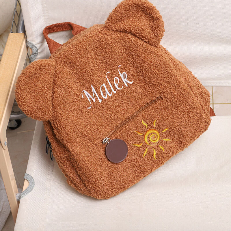 Our adorable personalized children's name Teddy Bear backpack, a high-quality accessory crafted with precision embroidery and attention to detail. This backpack is not only a practical item but also a delightful companion for your child's daily adventures.The personalized touch of having your child's name embroidered on the backpack adds a special element of uniqueness while also serving as a distinctive identifier, reducing the chances of it getting lost.