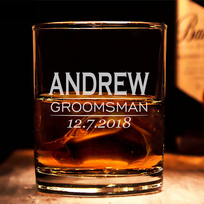 Personalized Whiskey Glass Custom Chic Name Design Groomsmen Engraved Attractive Wedding Gift