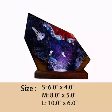 Space With Astronaut Rocket Chic Resin Wood Lamp Best Gift For Children