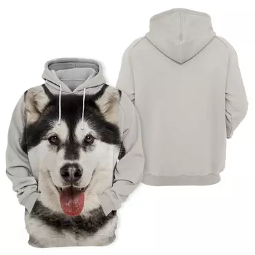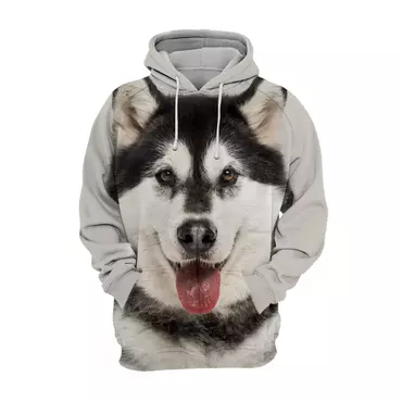 Features a captivating, **high-definition Alaskan Husky** across the entire hoodie.