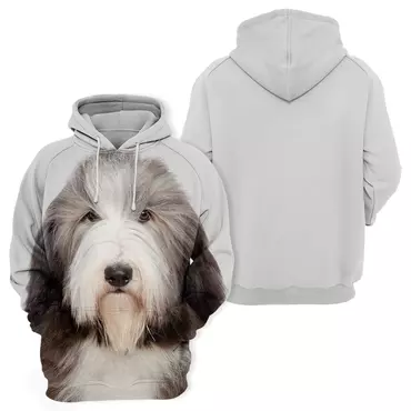 Features a captivating, **high-definition Bearded Collie Dog** across the entire hoodie.