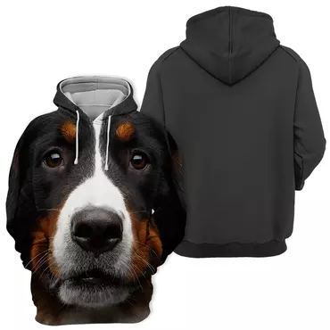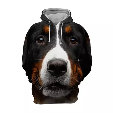 Features a captivating, **high-definition Bernese Mountain** across the entire hoodie.