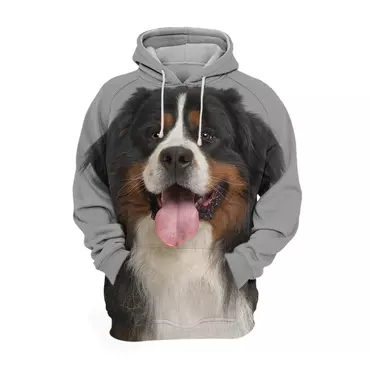 Features a captivating, **high-definition Bernese Mountain** across the entire hoodie.