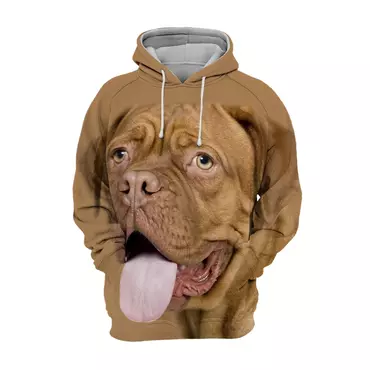 Features a captivating, **high-definition Bordeaux Mastiff** across the entire hoodie.