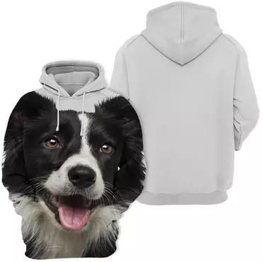 Features a captivating, **high-definition Border Collie** across the entire hoodie.