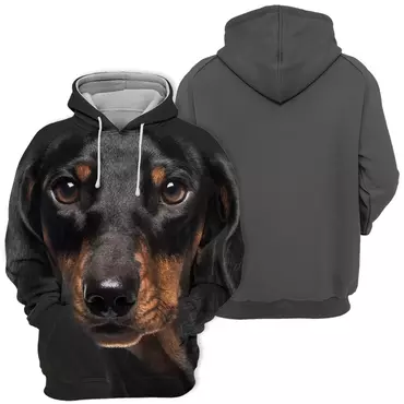Features a captivating, **high-definition Dachshund Sausage Dog** across the entire hoodie.