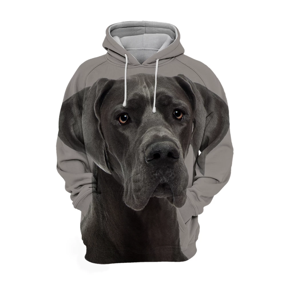 Features a captivating, **high-definition Great Dane** across the entire hoodie.