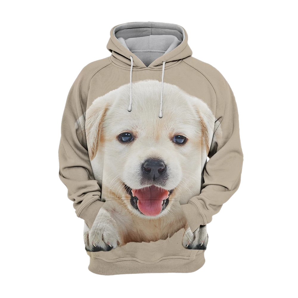 Features a captivating, **high-definition Labrador Retriever Puppy** across the entire hoodie.