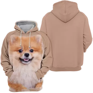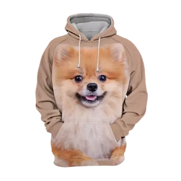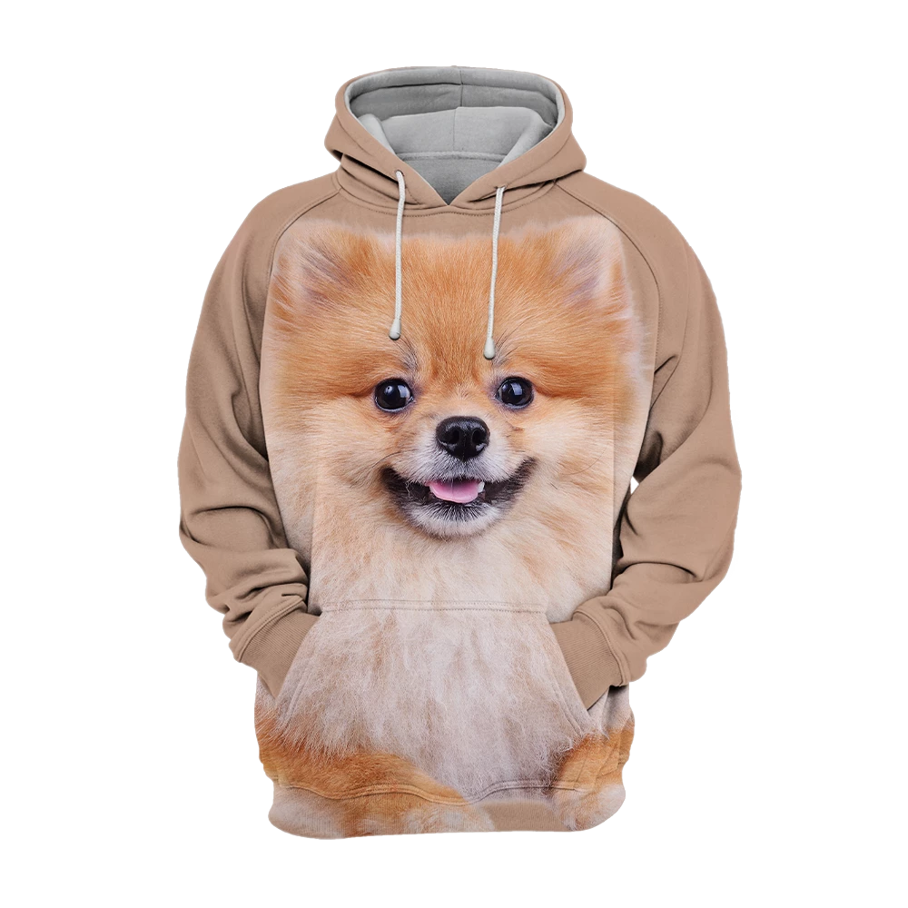 Features a captivating, **high-definition Pomeranian** across the entire hoodie.