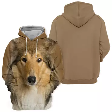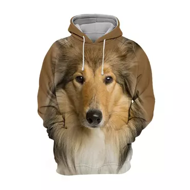 Features a captivating, **high-definition Scotch Collie** across the entire hoodie.