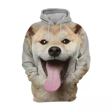Features a captivating, **high-definition Shiba Inu Akita** across the entire hoodie.
