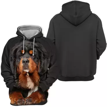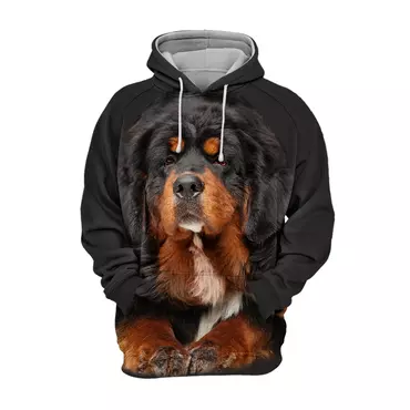 Features a captivating, **high-definition Tibetan Mastiff** across the entire hoodie.