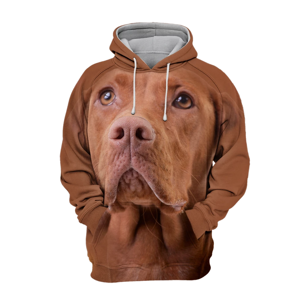 Features a captivating, **high-definition Vizsla Hungarian** across the entire hoodie.