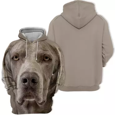 Features a captivating, **high-definition Weimaraner** across the entire hoodie.