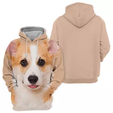 Features a captivating, **high-definition Welsh Corgi Dog** across the entire hoodie.