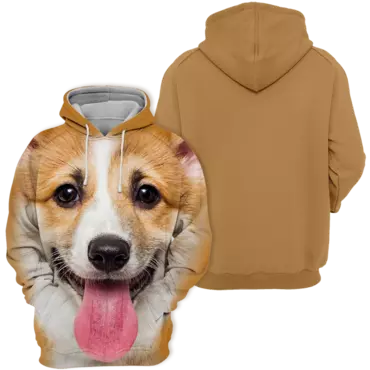 Features a captivating, **high-definition Welsh Corgi Puppy** across the entire hoodie.
