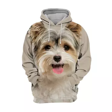 Features a captivating, **high-definition Yorkshire Terrier Yorkie** across the entire hoodie.