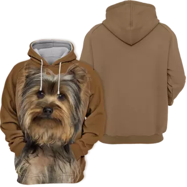 Features a captivating, **high-definition Yorkshire Terrier Yorkie** across the entire hoodie.