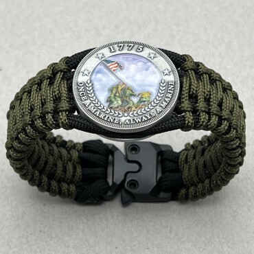 The cord is threaded through a proprietary military insignia, making it essentially an indestructible bracelet.