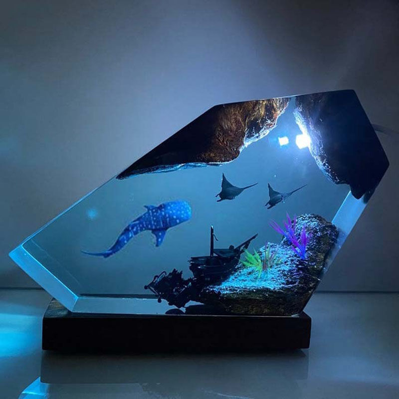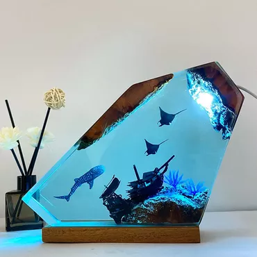Whale Shark And Rays Chic Resin Wood Lamp Creative Gift For Children