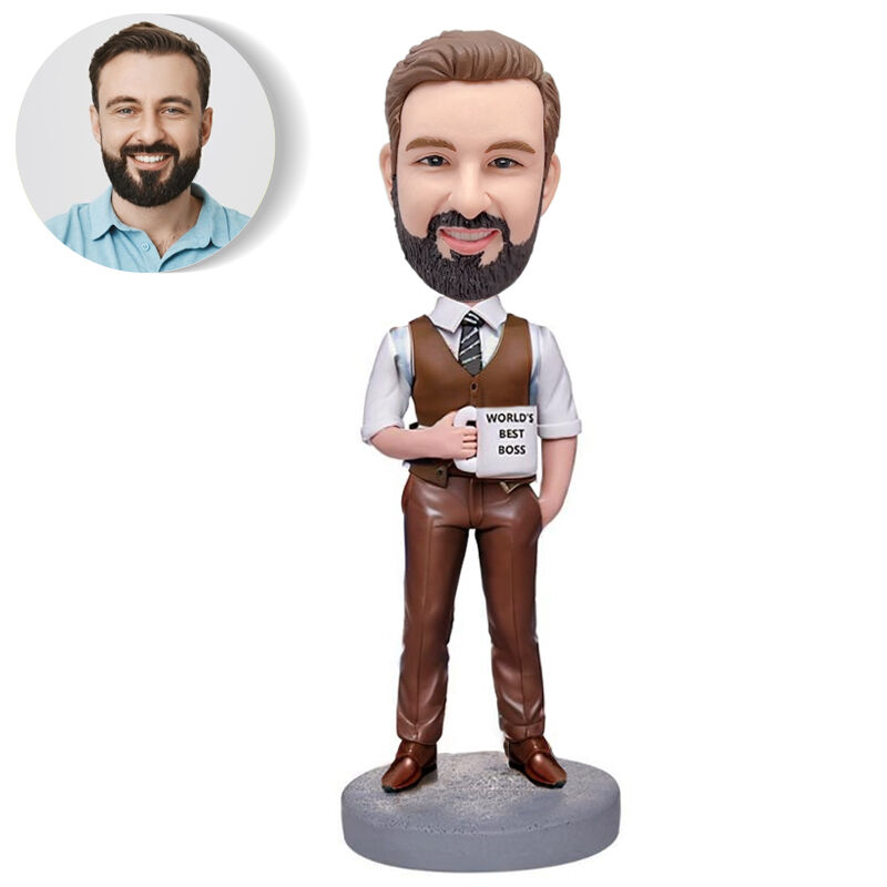 "World's Best Boss" Custom Bobblehead of Boss Wearing a Suits